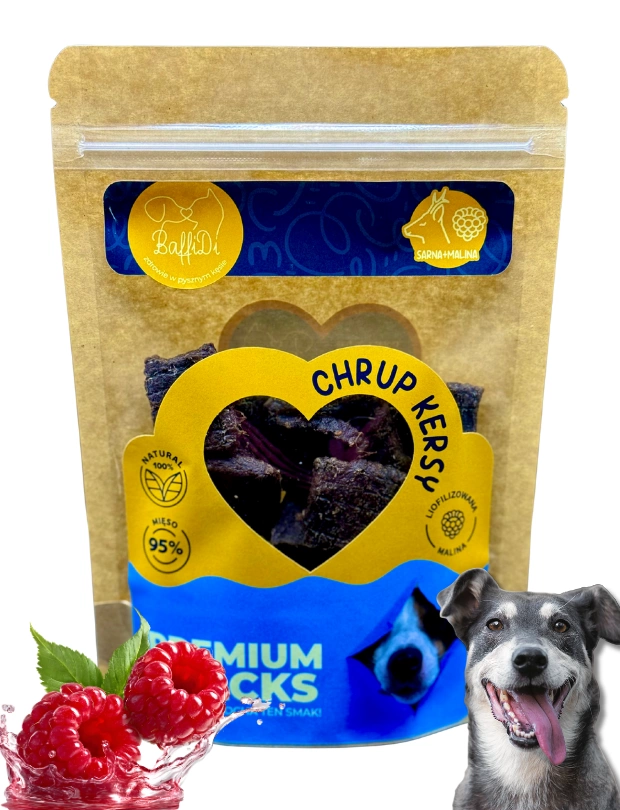 ChrupKersy od BaffiDi to absolutna nowość na rynku – pierwsze naturalne psie krakersy, w których połączyliśmy delikatnego mięsa sarny z