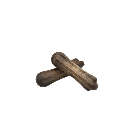 - Unikalne połączenie trwałego tworzywa i naturalnej mączki drewnianej zapewnia wyjątkową wytrzymałość oraz naturalny wygląd gryzaka. To idealne rozwiązanie dla psów, które uwielbiają intensywne gryzienie.