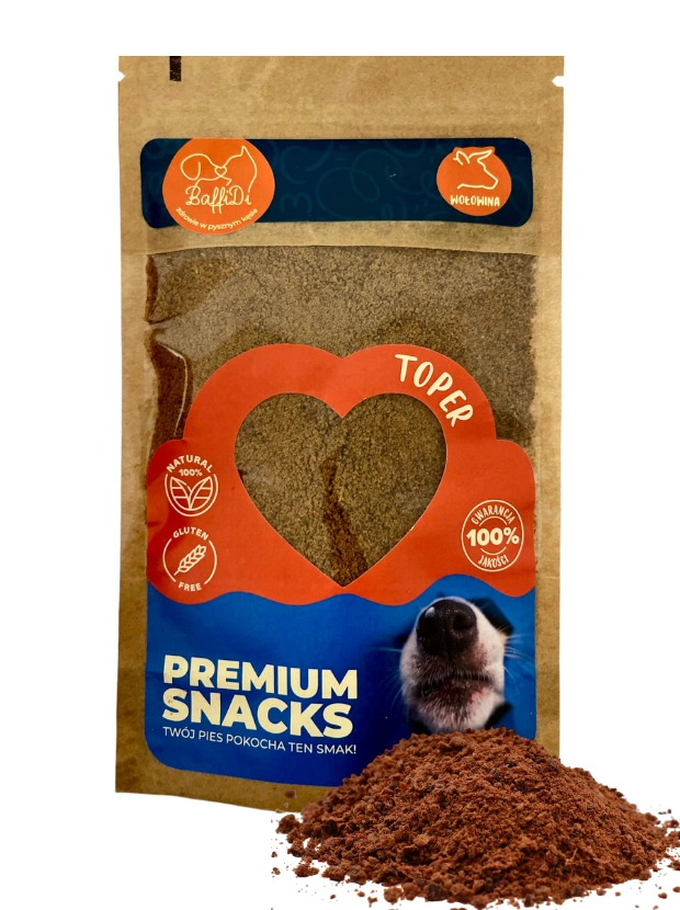 Dosmaczasz z suszonego mielonego mięsa wołowego to pyszna i odżywcza przekąska, która zachwyci smakoszy wśród psów. Wyprodukowany z najwyższej jakości mięsa wołowego, ten przysmak oferuje wiele zastosowań i zalet, które uczynią go ulubionym smakołykiem Twojego pupila. Toper BaffiDi jest idealnym uzupełnieniem do lickmat i misek interaktywnych, które zapewni dłuższe i bardziej atrakcyjne doświadczenie kulinarnie, ale także angażuje umysł psa.